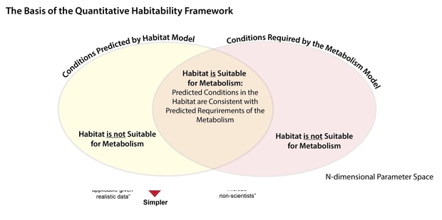 Figure 2. Illustration of the basis of the Framework for Habitability: The comparison of the environmental conditions predicted by the habitat model and the environmental conditions required by the metabolism model.
