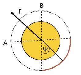 Image: This is Figure 1 from a paper by Duncan Forgan (citation below). Caption: Diagram of a Class A Stellar Engine, or Shkadov thruster. The star is viewed from the pole – the thruster is a spherical arc mirror (solid line), spanning a sector of total angular extent 2ψ. This produces an imbalance in the radiation pressure force produced by the star, resulting in a net thrust in the direction of the arrow. Credit: Duncan Forgan.